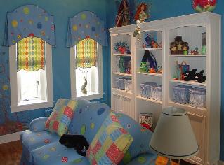 | Wiggles 'N Giggles also designed these playful arch-top valances for the Children's Playroom in the 2004 ASID Showcase Home. |
